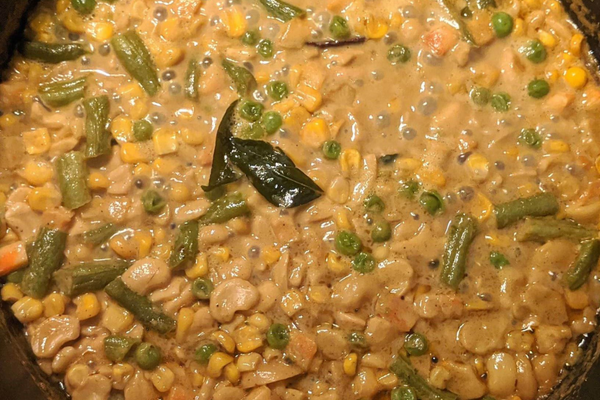 Add half a bag of frozen mixed vegetables (Mixture of corn, beans, carrots and green peas). To make an authentic curry, only add green peas or don’t add other vegetables to the curry. Add more water / coconut milk as needed